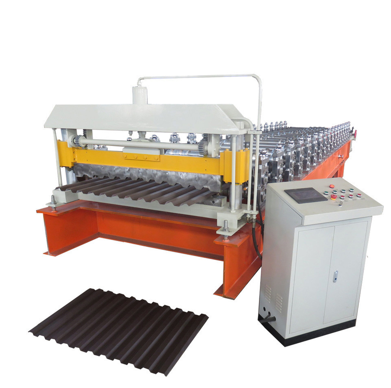 Hydraulic motor roof panel roll forming machine. Power is from hydraulic motor. Hydraulic oil supply the power to roof panel roll forming machine